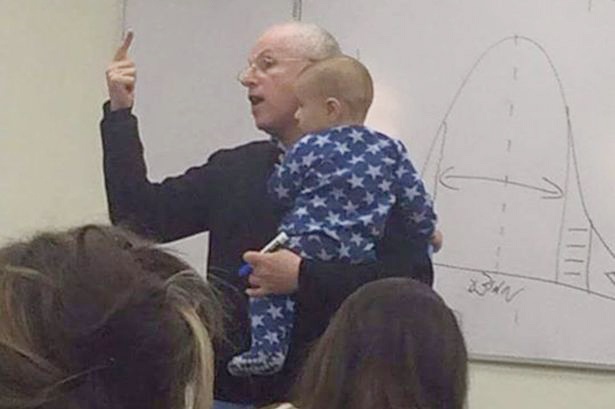 Vị giáo sư 67 tuổi có 4 con và 5 cháu nên nhiều kinh nghiệm trong việc chăm trẻ. Ông cũng thường cho phép những sinh viên của mình mang con tới lớp, thậm chí cho con bú trong giờ.