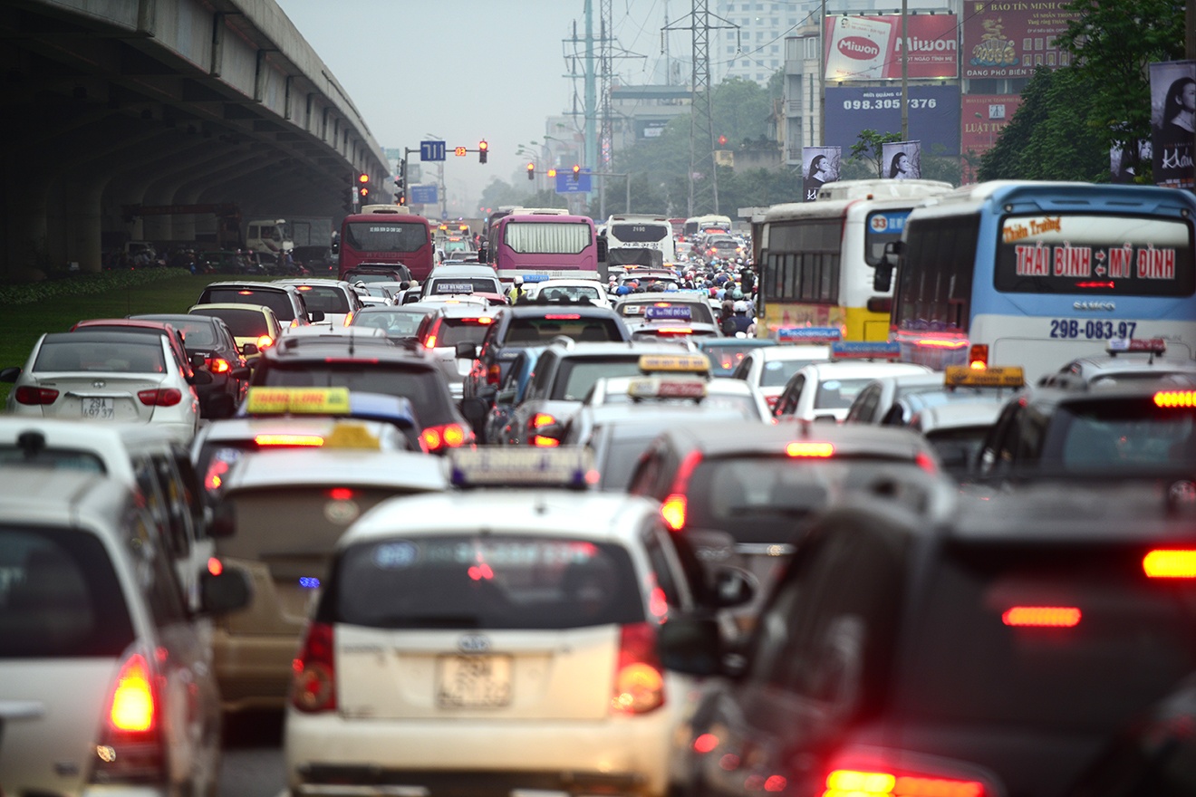 | Đường Phạm Hùng ùn ứ kéo dài từ bến xe Mỹ Đình đến đường Khuất Duy Tiến bắt đầu từ 16h30. |