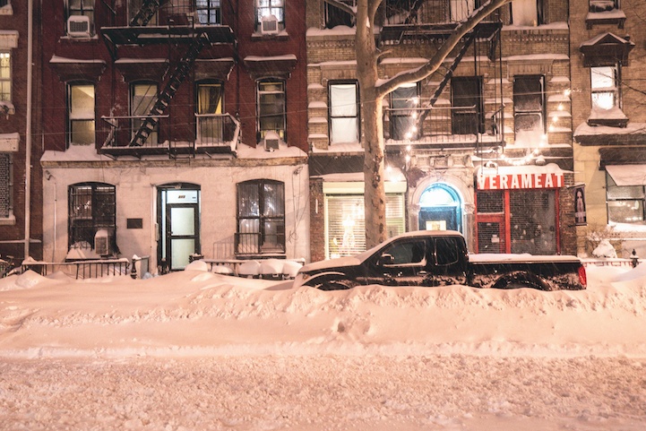 | Xe bán tải gầm cao cũng không thể vượt qua bão tuyết tại New York. Ảnh: CNN. |