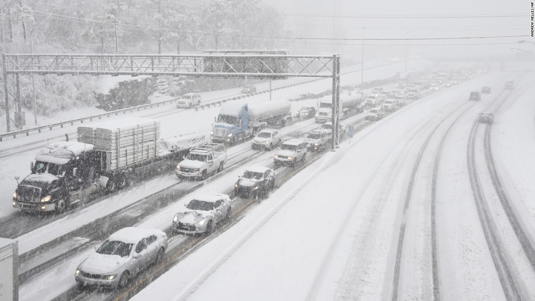 | Nhiều tuyến đường cao tốc tại miền Đông nước Mỹ gặp phải tình cảnh tắc đường kéo dài vì bão tuyết. Ảnh: CNN. |