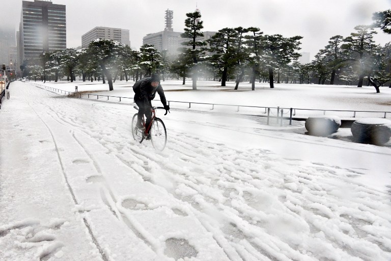 | Nhiều tuyến đường tại Tokyo, Nhật Bản vắng bóng người vì thời tiết quá lạnh. Ảnh: BBC. |
