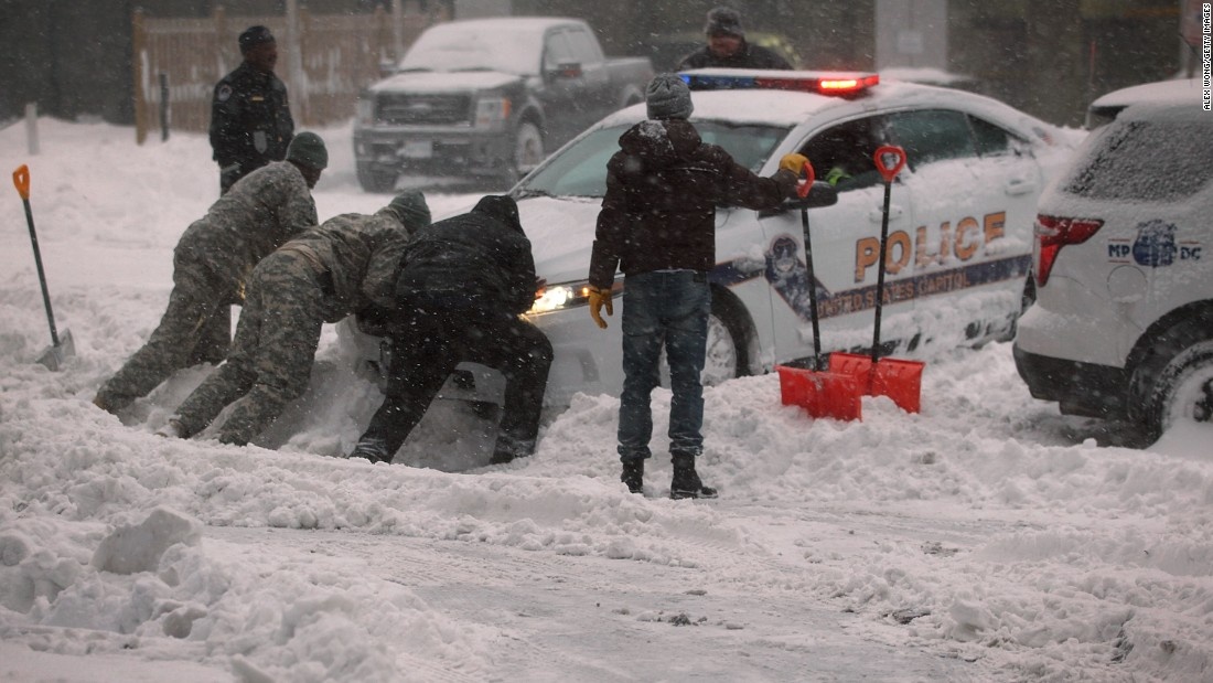 | Xe cảnh sát cũng gặp nạn vì bão tuyết. Ảnh: CNN. |