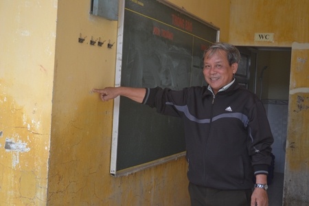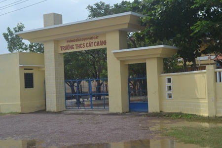 | Hiệu trưởng trường Tiểu học Cát Chánh cùng đồng nghiệp dọn dẹp. |