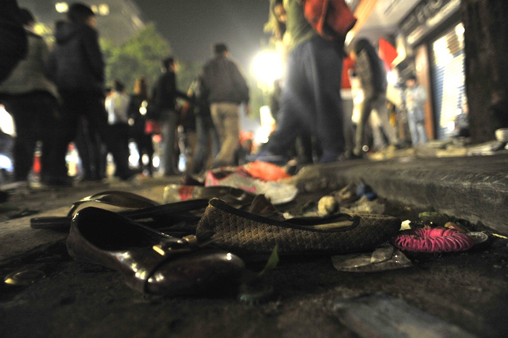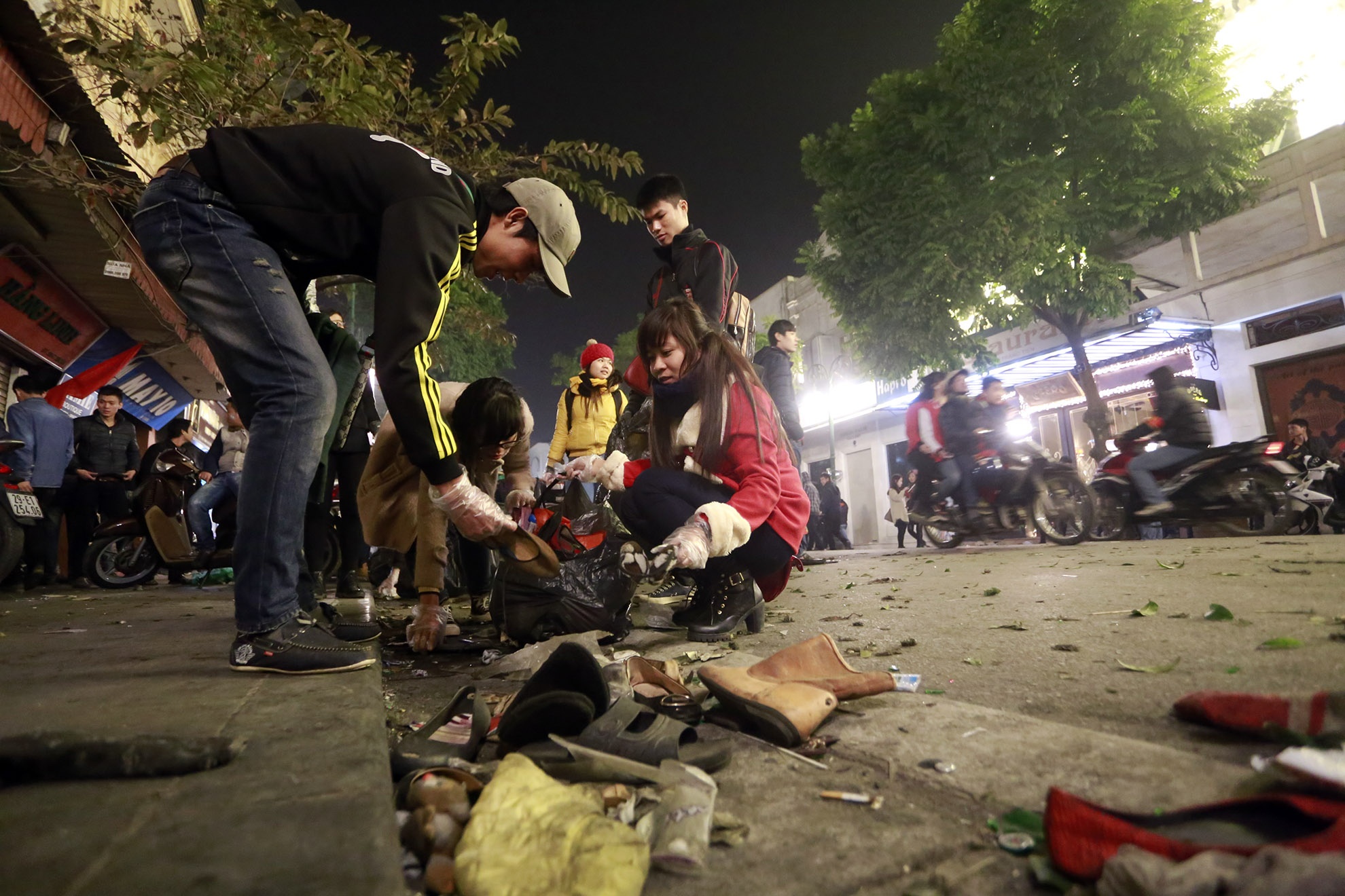 | Những người bị mất dép trong chen lấn chủ yếu là nữ giới. Ảnh: Hoàng Anh. |