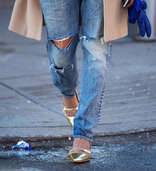 | Giày ánh kim cũng rất hợp với quần jean năng động. |