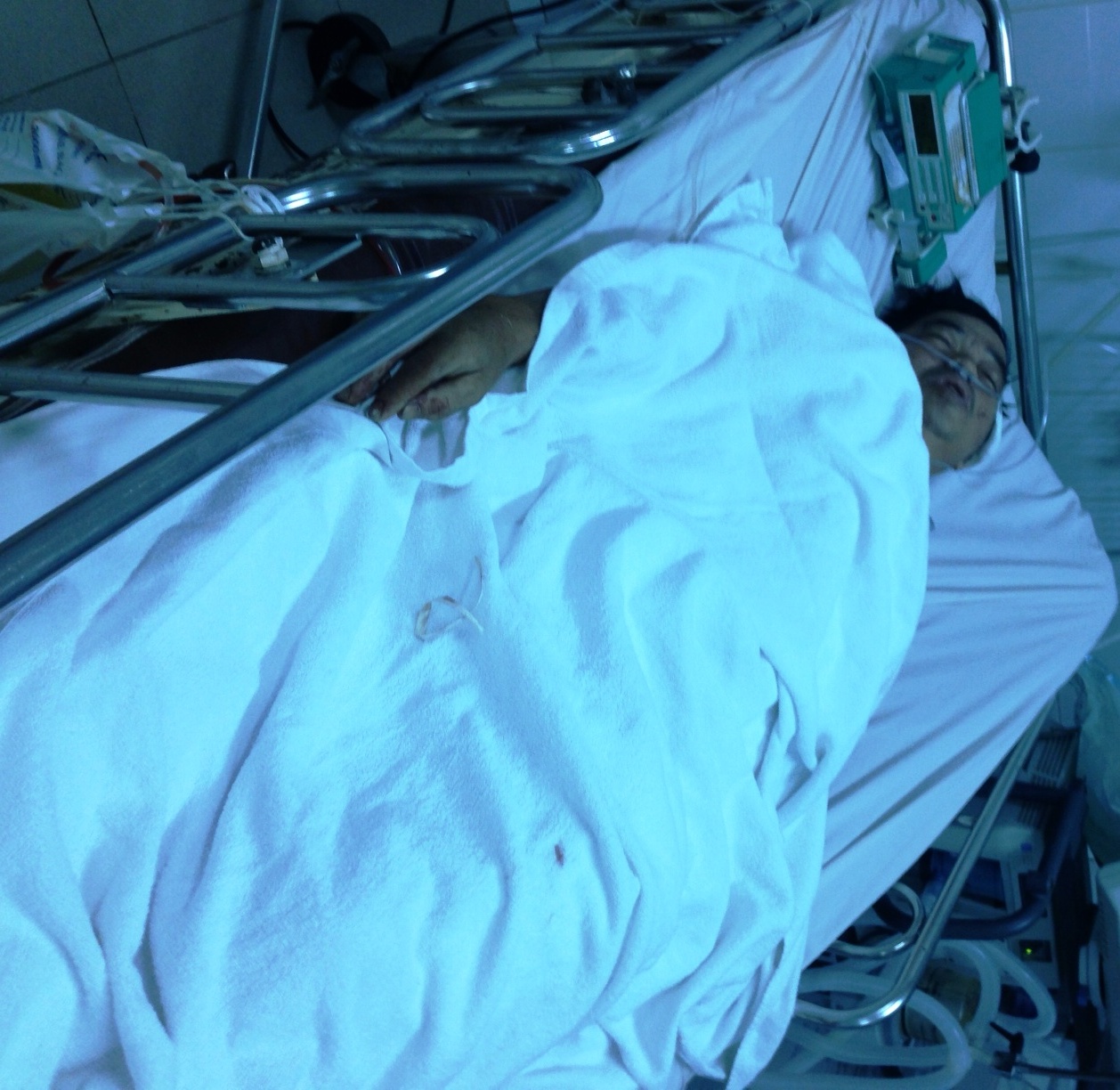 | Dân phòng Nguyễn Văn Chệt nằm cấp cứu ở bệnh viện Nhân dân Gia Định. |
