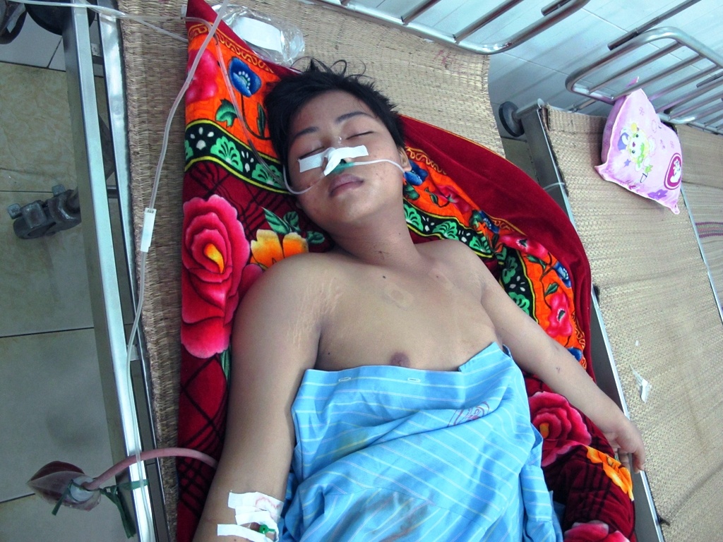 | Trần Đình Tú hiện đã qua cơn nguy kịch đang được điều trị tại bệnh viện Đa khoa Nghệ An. |