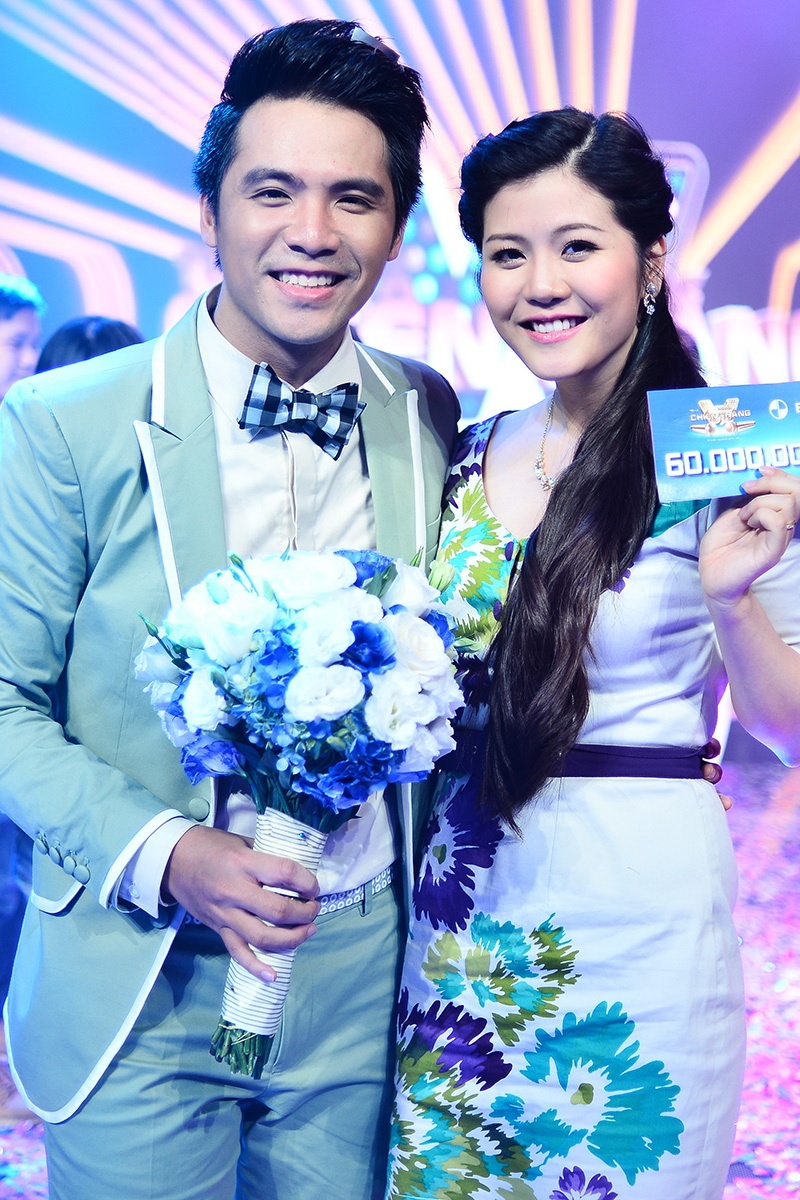 | Huy Luân được vợ bên cạnh ủng hộ. |