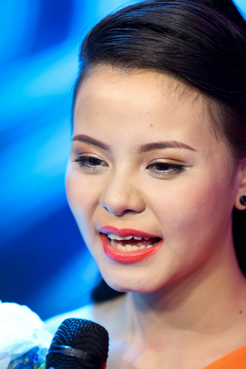 | Hải Châu bối rối trả lời phỏng vấn báo chí sau giây phút đăng quang. Không có kinh nghiệm lại chưa thoát khỏi cảm giác choáng ngợp nên cô sinh viên này gặp khó khăn trong việc tìm kiếm ngôn ngữ biểu đạt. |