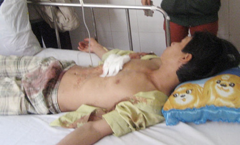 | Bệnh nhân tên Tiền đang được cấp cứu tại Bệnh viện Đa khoa Trung ương Cần Thơ. |