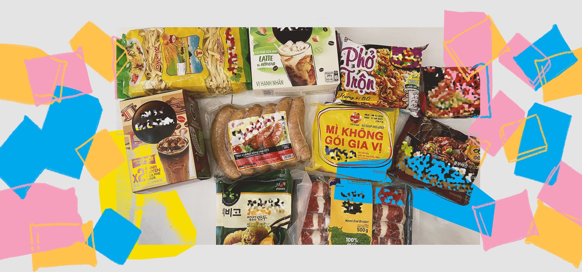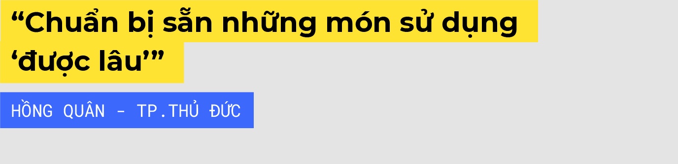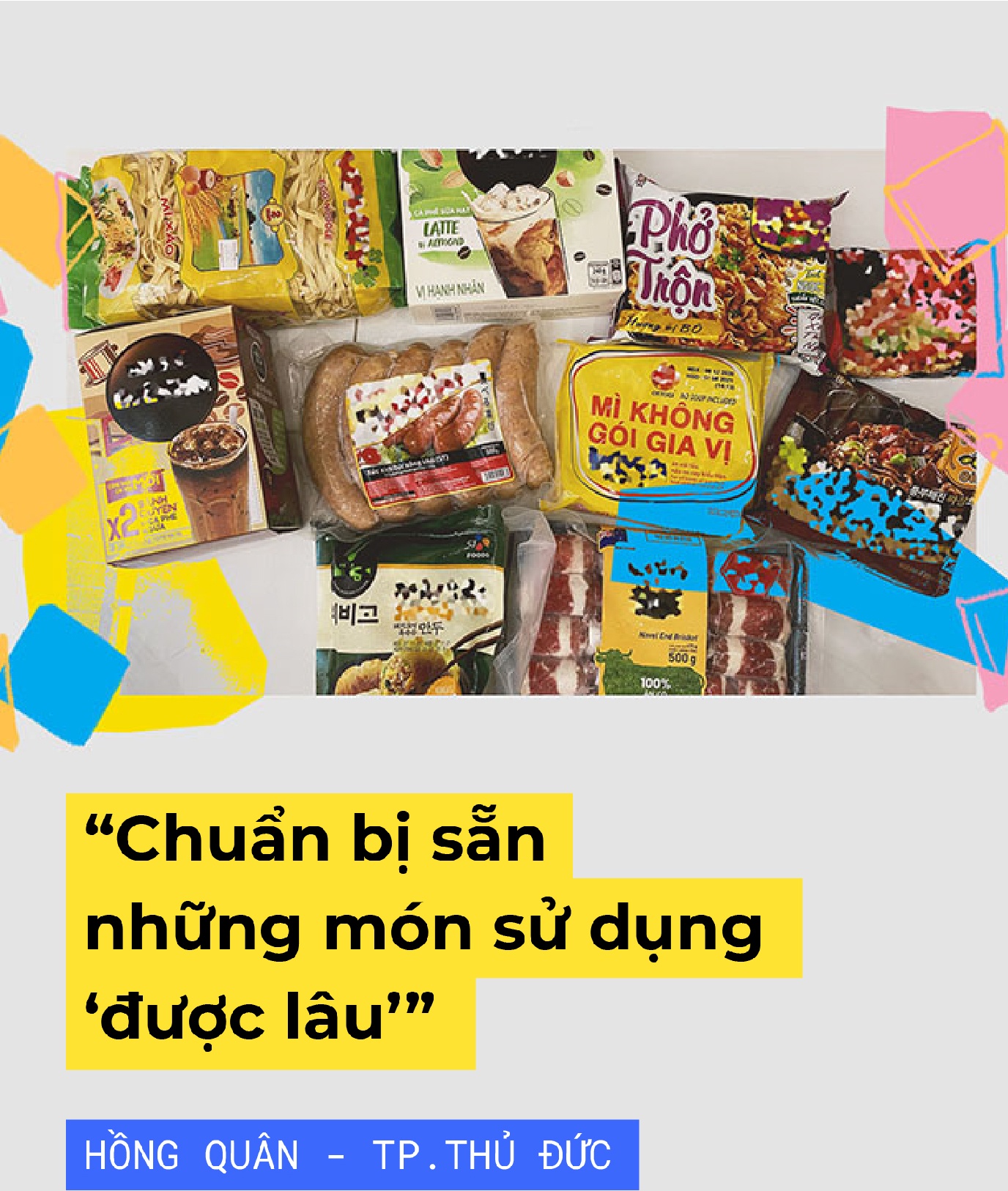 Thực hiện giãn cách theo chỉ thị của thành phố, tôi cũng chỉ mua sẵn một vài món đồ khô hoặc có thể để tủ đông. Tôi ưu tiên chọn những món dễ chế biến và để được lâu.