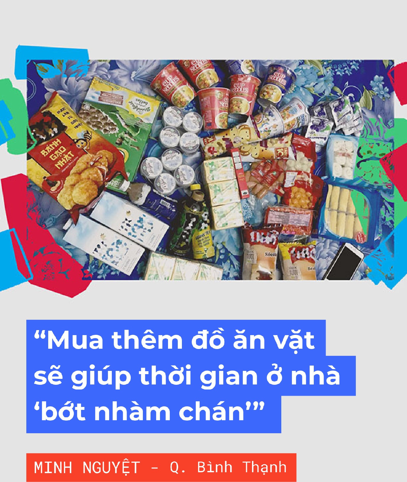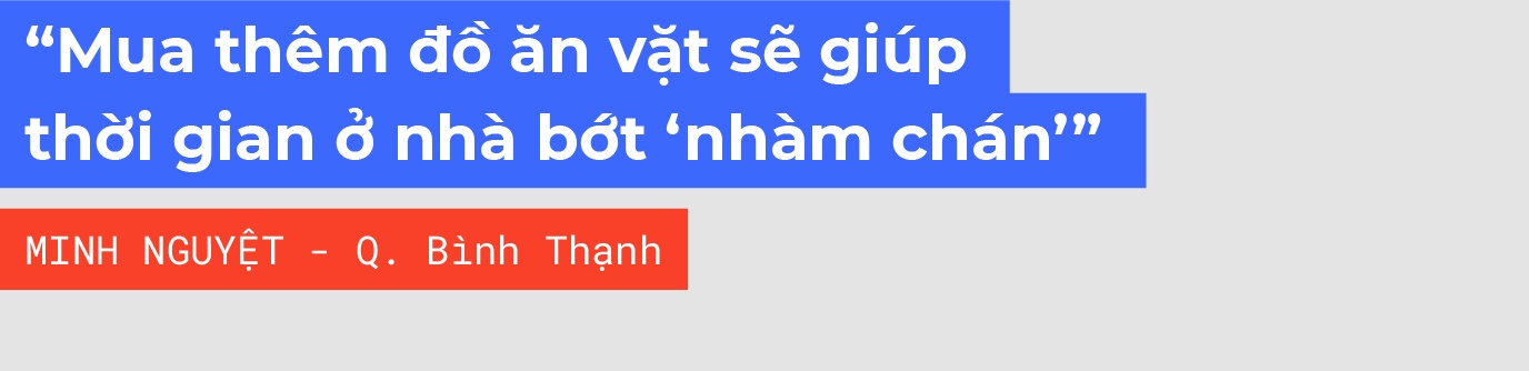 Nghe thì thấy hơi tốn tiền nhưng thật ra tôi để ăn cả tháng chưa hết. Tôi cứ mua để sẵn như vậy cũng sẽ yên tâm hơn. Vừa ăn vừa làm việc cũng sẽ tập trung hơn nên đồ ăn vặt là thứ không thể thiếu với tôi trong kỳ giãn cách.