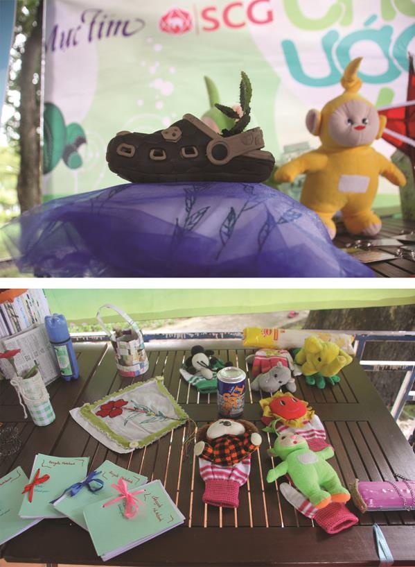 | Tất cả các món hàng tái chế đều được làm bởi các đại sứ Chung ước mơ xanh. |
