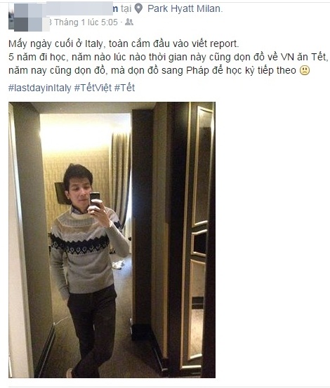 Tâm Khôi - du học sinh Italy - bày tỏ: “Năm nay cũng sắp xếp đồ đạc mà không phải là về quê ăn Tết với ba mẹ. Lại một cái Tết xa nhà buồn biết bao”.