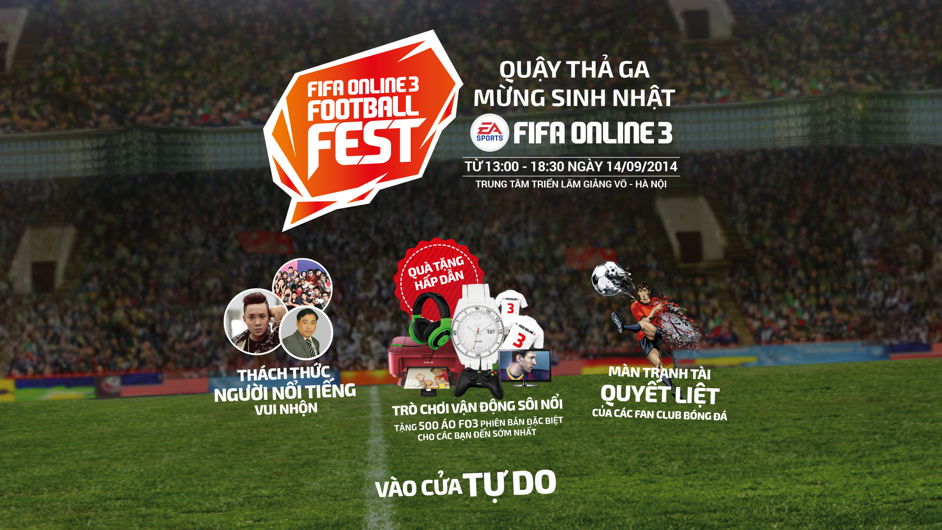 Vào ngày 14/9, trung tâm triển lãm Giảng Võ sẽ tràn ngập không khí cuồng nhiệt của người hâm mộ túc cầu khu vực Hà Nội, với Ngày hội bóng đá - FIFA Online 3 Football Fest. Chương trình mang đến nhiều hoạt động phong phú, đa dạng xoay quanh quả bóng tròn, như tâng bóng, rê bóng, sút phạt, và những gameshow cực chất và lần đầu tiên xuất hiện: đá banh billard người, thi đấu game bóng đá theo đội nhóm, thi tài bình luận bóng đá, thử thách kiến thức bóng đá với bình luận viên nổi tiếng Quang Tùng…