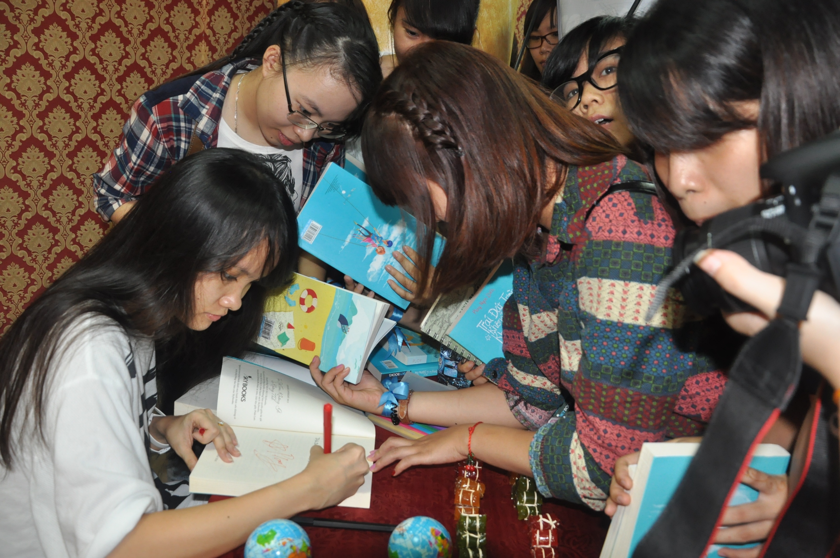 Tác giả Ploy Ngọc Bích (phải) và Tuyệt Đỉnh Sinh Vật ký tặng độc giả.
