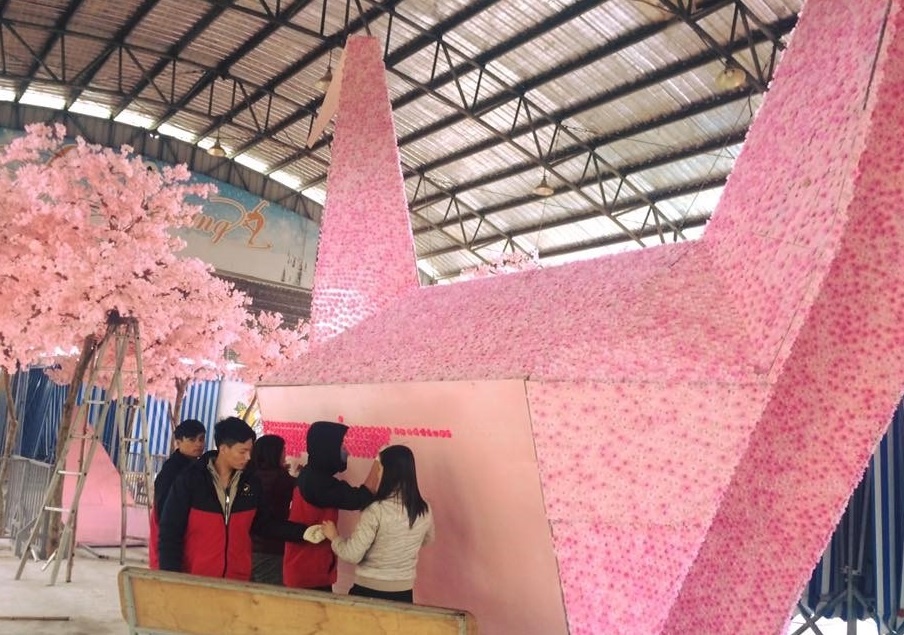 | Ban tổ chức đang hoàn thiện mô hình hạc hoa lớn nhất Việt Nam. |