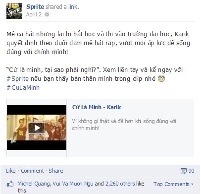 Không phải ngẫu nhiên mà MV Cứ là mình của Karik nhận được nhiều chia sẻ đến vậy. Thông điệp của bài hát cũng đồng thời là châm ngôn sống của đông đảo bạn trẻ, nhất là khi họ đang sống trong bối cảnh xã hội phát triển với quá nhiều lựa chọn và cả thách thức. Một điều thú vị là quan điểm này cũng rất gần gũi với phương châm “Sống đúng với tính tình” của Sprite – người bạn đồng hành cùng giới trẻ trong chặng đường sống thật, sống đam mê để chinh phục mọi khát vọng.