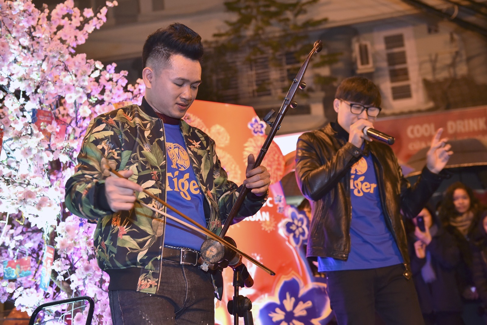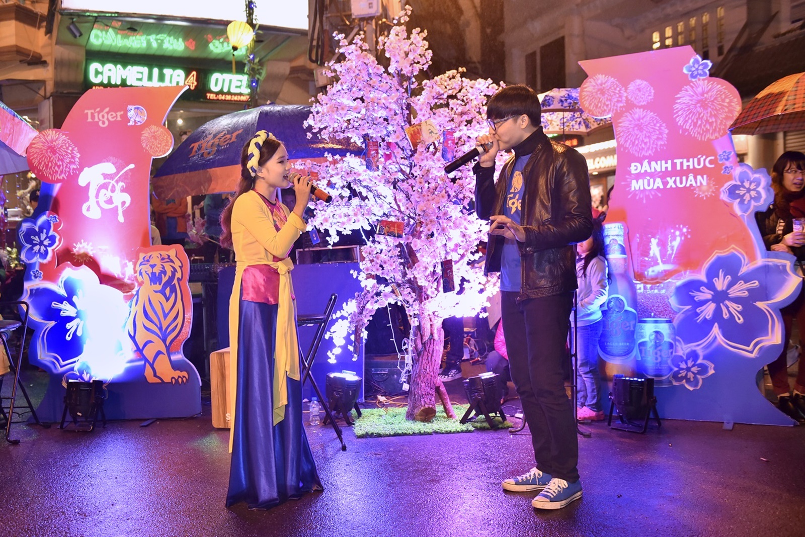 Phố cổ Hà Nội những ngày cuối năm vốn đông đúc lại càng thêm sôi động khi có sự xuất hiện của chuỗi sự kiện âm nhạc Tiger remix – Đánh thức mùa xuân. |
