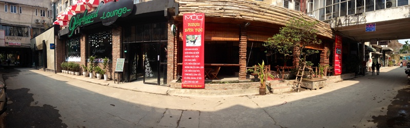 | Góc ngoài trời của một quán bar lúc này vẫn lưa thưa khách.