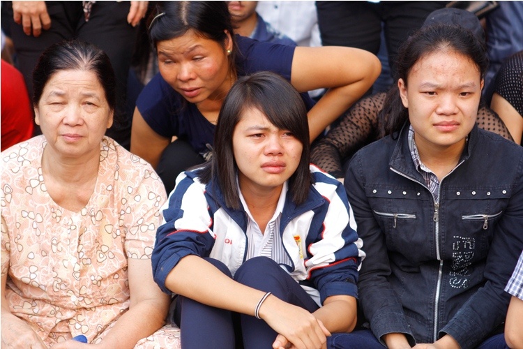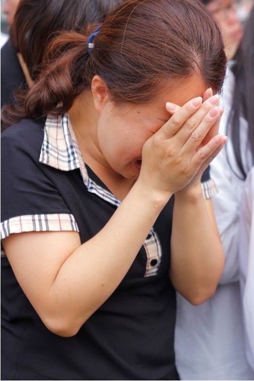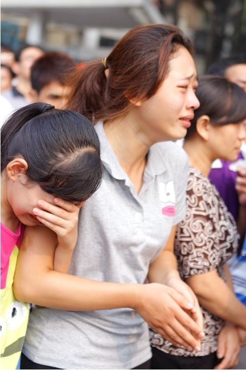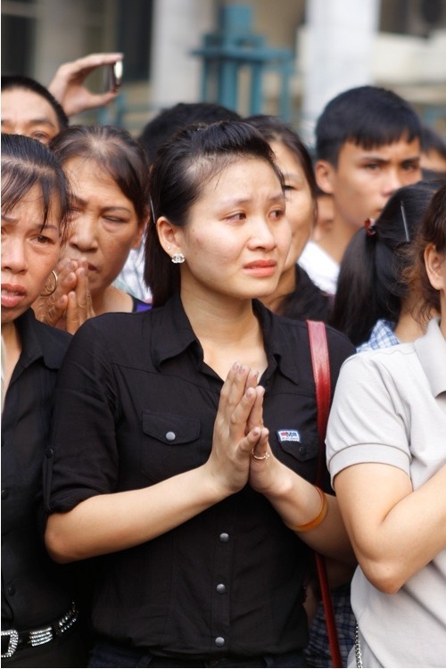 | Cúi đầu lạy Người trong dòng nước mắt. Hình ảnh khi đoàn xe đi qua Nhà Hát Lớn. |