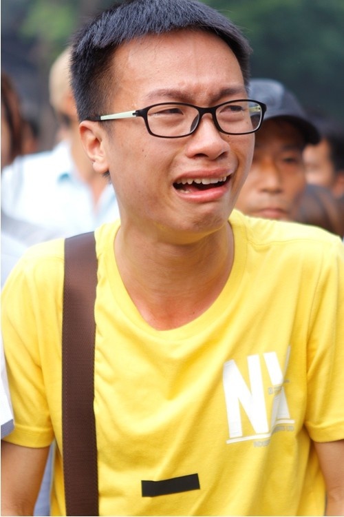 | Nam sinh này đã vỡ òa khi nhìn đoàn xe đi qua. |