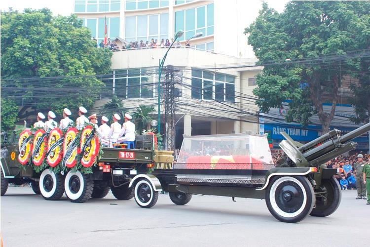 | Đoàn linh xa chở di quan của người rời khỏi nhà tang lễ số 5 Lê Thánh Tông. |