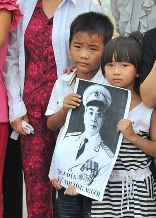 | Họ đã chờ đợi ở đây từ rất sáng để ngóng linh cữu Đại tướng dừng lại. |