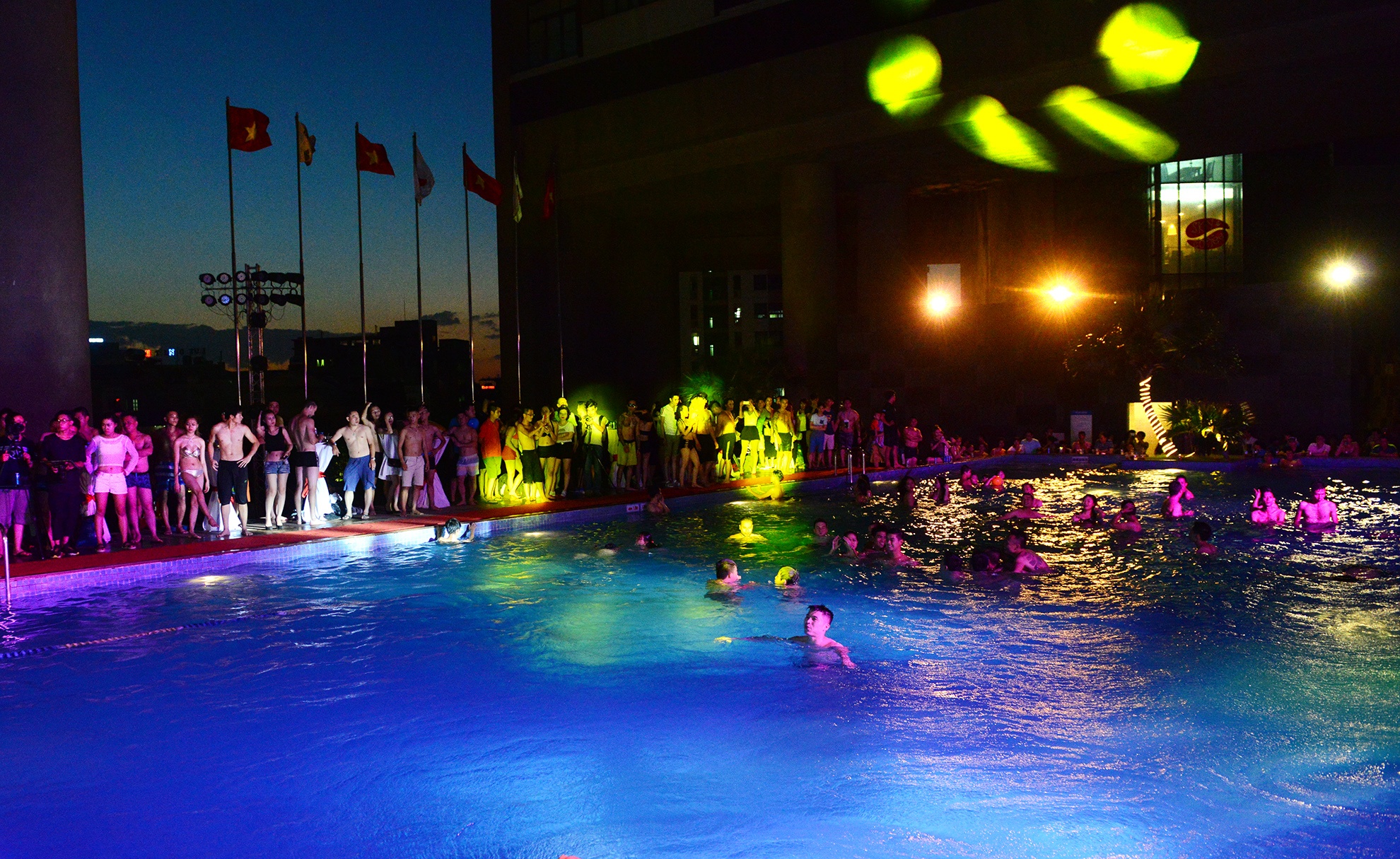 | 17h chiều 27/6, hàng trăm bạn trẻ tập trung tại bể bơi lớn trong toà nhà Dolphin Plaza (Mỹ Đình) tham gia tiệc Pool Party cùng các cư dân. |
