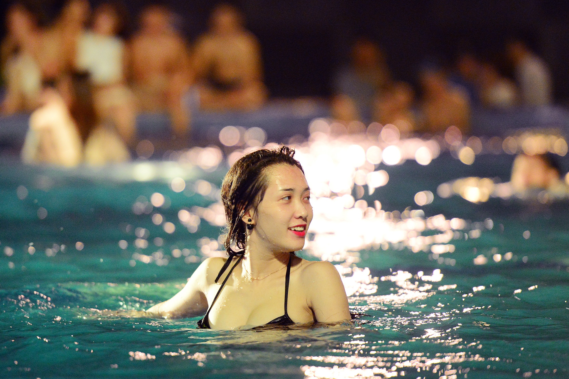 | Một số cô gái người nước ngoài cũng tham gia. Tiệc bể bơi là một hoạt động vui chơi phổ biến của giới trẻ các nước phương Tây. |