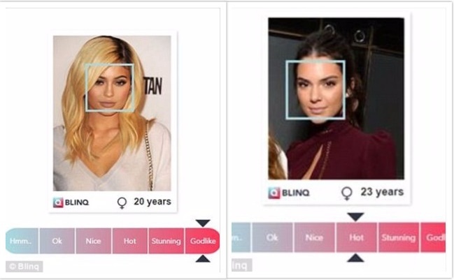| Chị em siêu mẫu nhà Jenner cũng được đưa lên "bàn cân nhan sắc" của ứng dụng Blinq. |