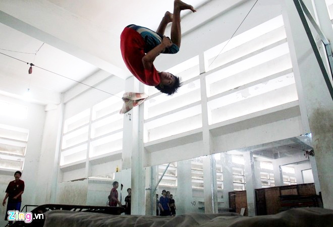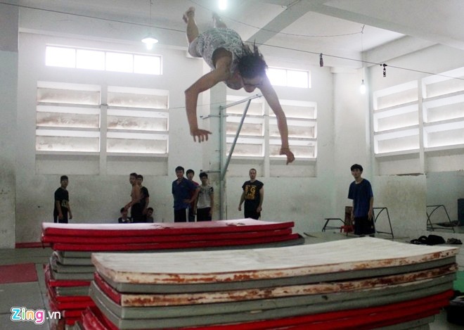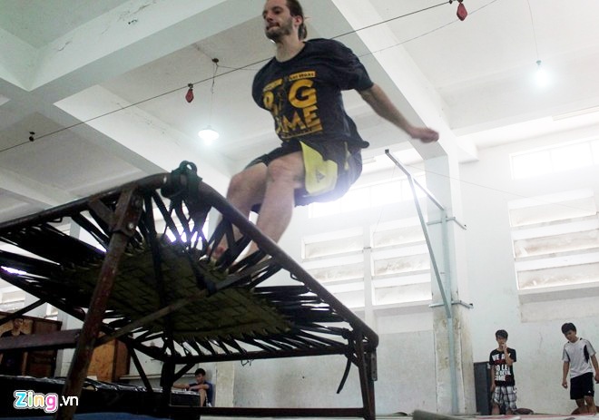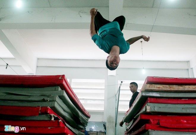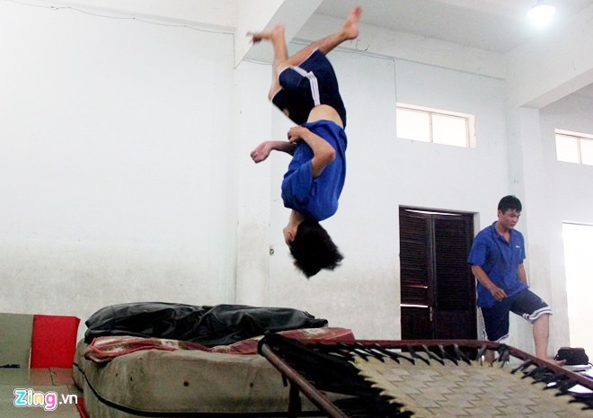 | "Lúc đầu tiên tập sợ lắm, thấy nguy hiểm nữa, nhảy lộn đơn giản nhưng mỗi lần tiếp đất sai là đau ê ẩm chứ chưa nói gì đến việc lộn vài vòng trên không rồi tiếp đất. Nhưng dần dần tập cũng quen, và trở nên nghiền, có lần bị chấn thương nặng nhất là nứt xương tay nhưng không thể bỏ được", Vy Thành, tâm sự. |