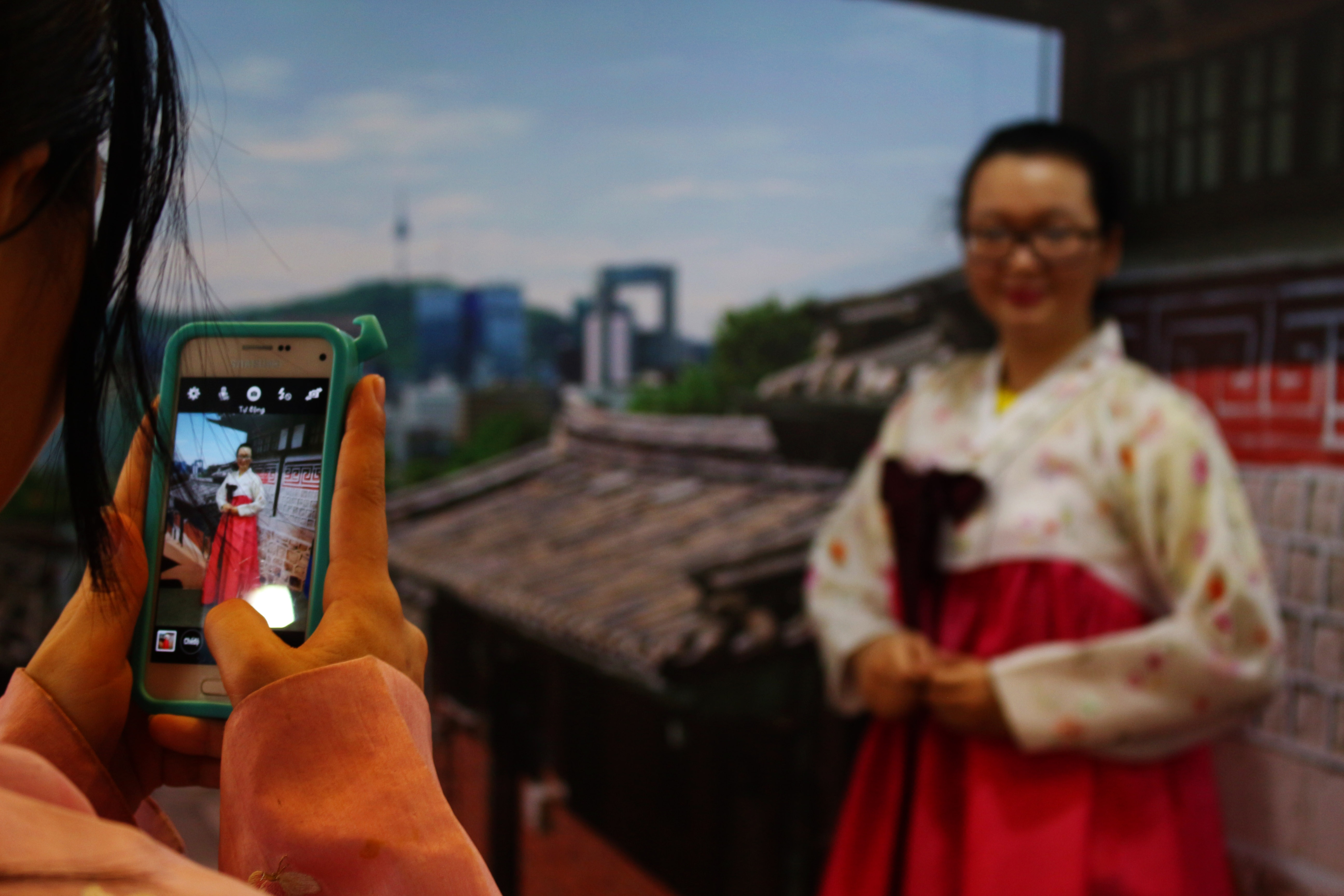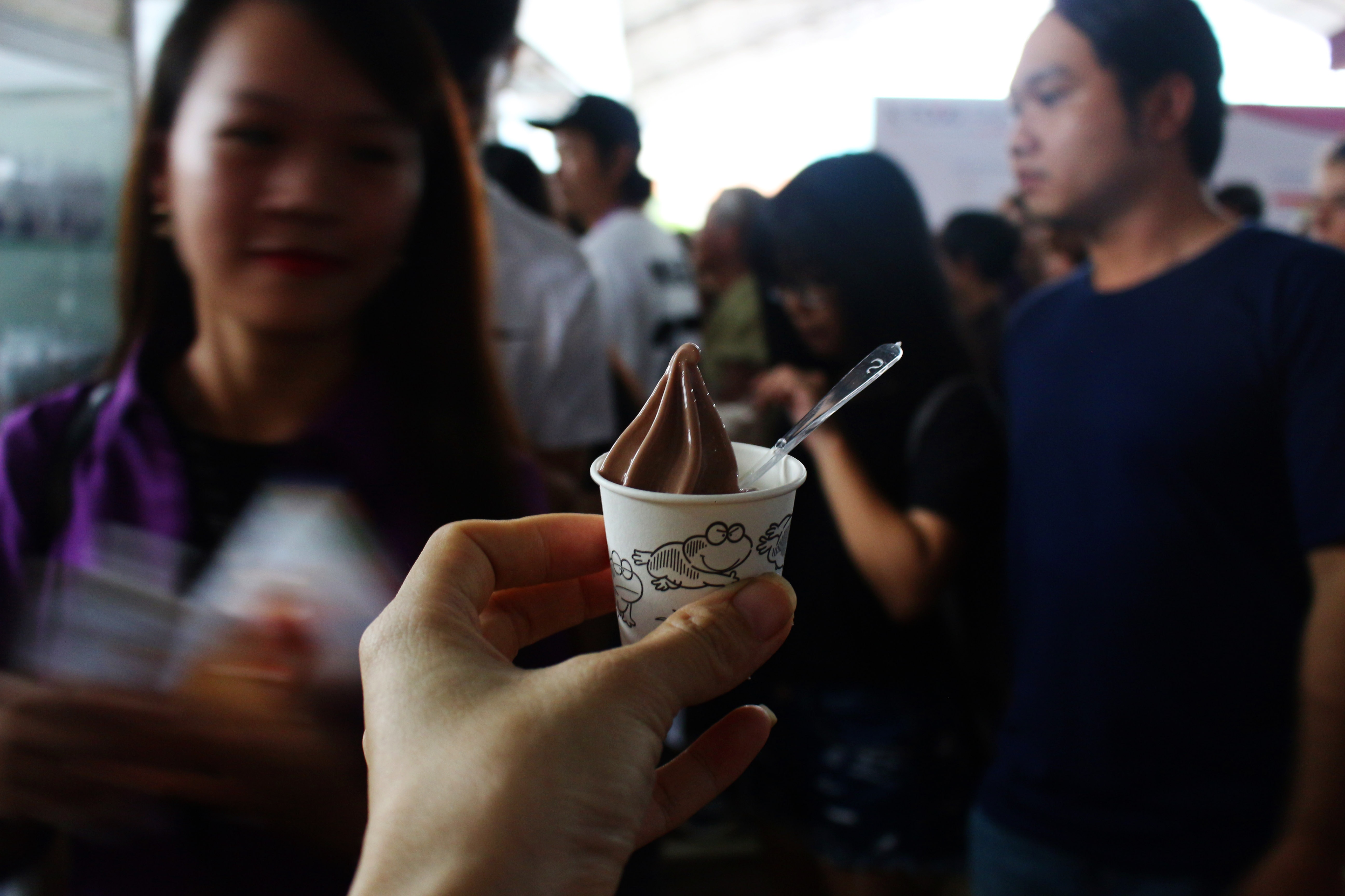 Dù dòng người xếp hàng chờ thử kem tươi vị chocolate luôn đông đúc, nhân viên người Hàn Quốc vẫn tươi cười.