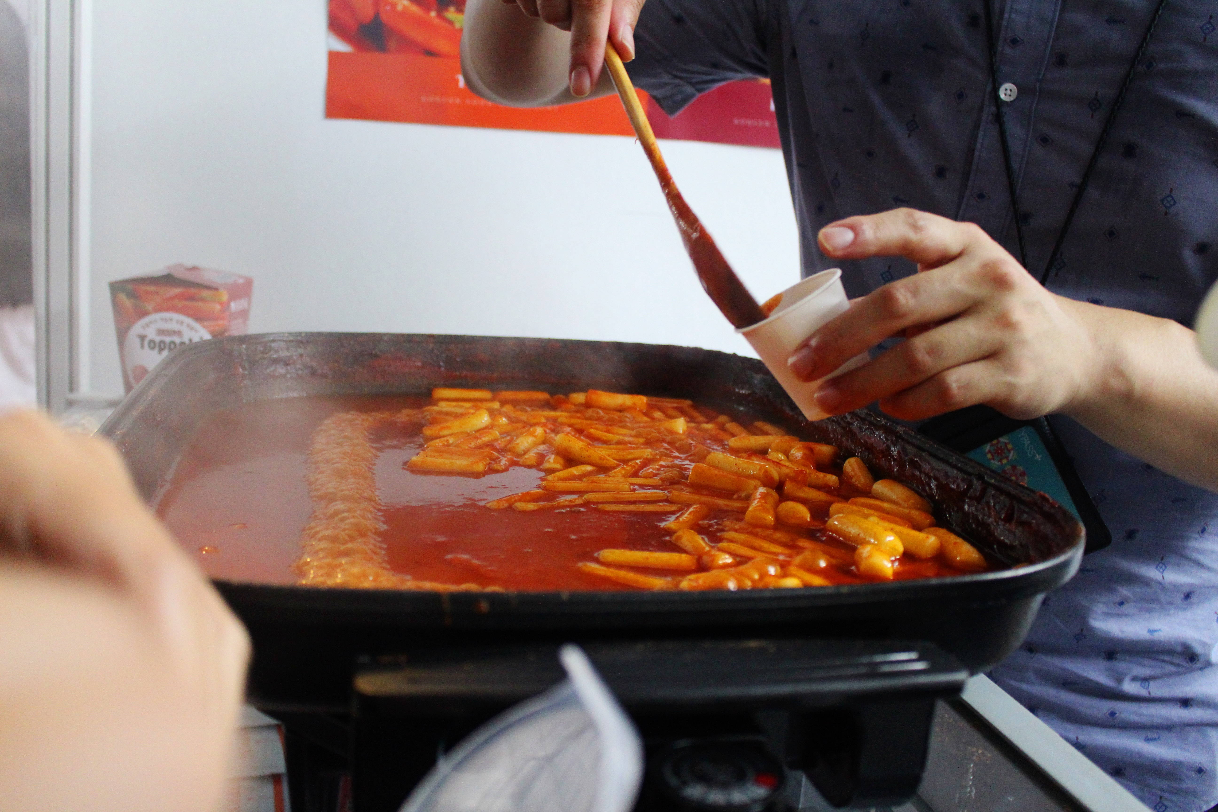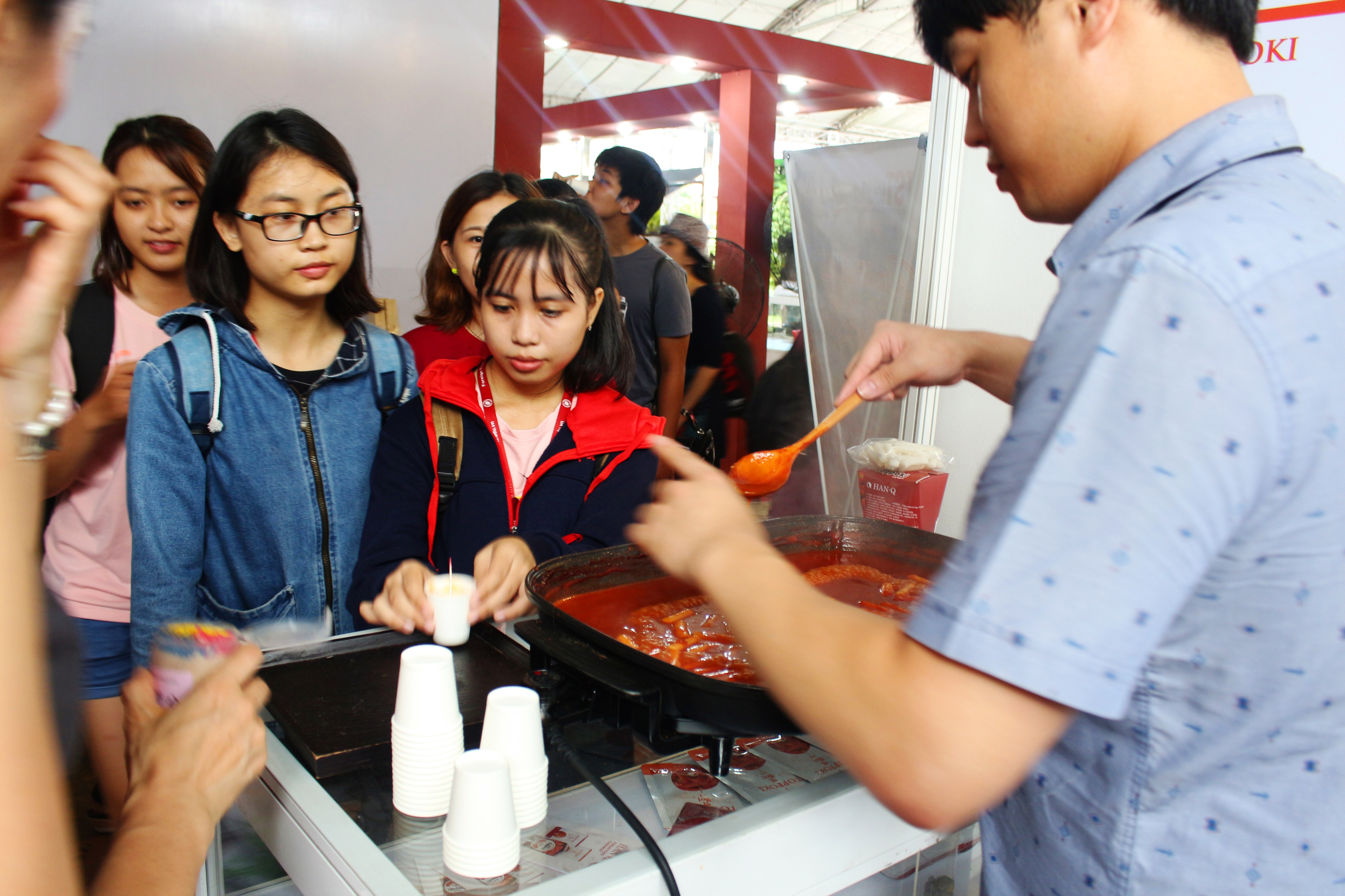 Tham quan lễ hội, người tiêu dùng có cơ hội thưởng thức các món ăn đến từ đất nước kim chi như tokkbukki, món bánh gạo có màu đỏ và vị cay đặc trưng.