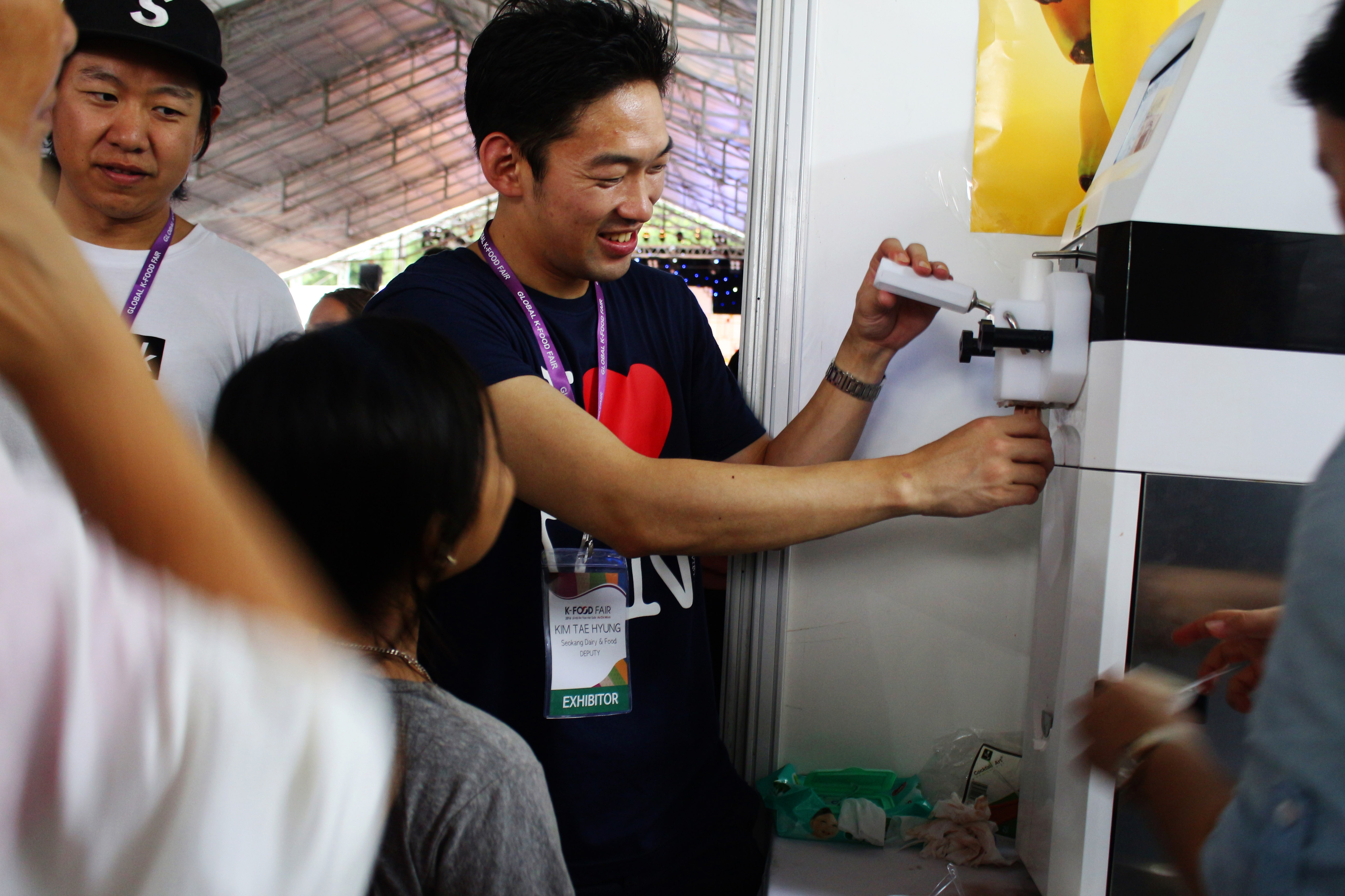 Hấu hết các món ở lễ hội đều có vị cay, hay dầu mỡ, nên gian hàng thử các loại sữa vị trái cây Hàn Quốc cũng nhộn nhịp không kém.