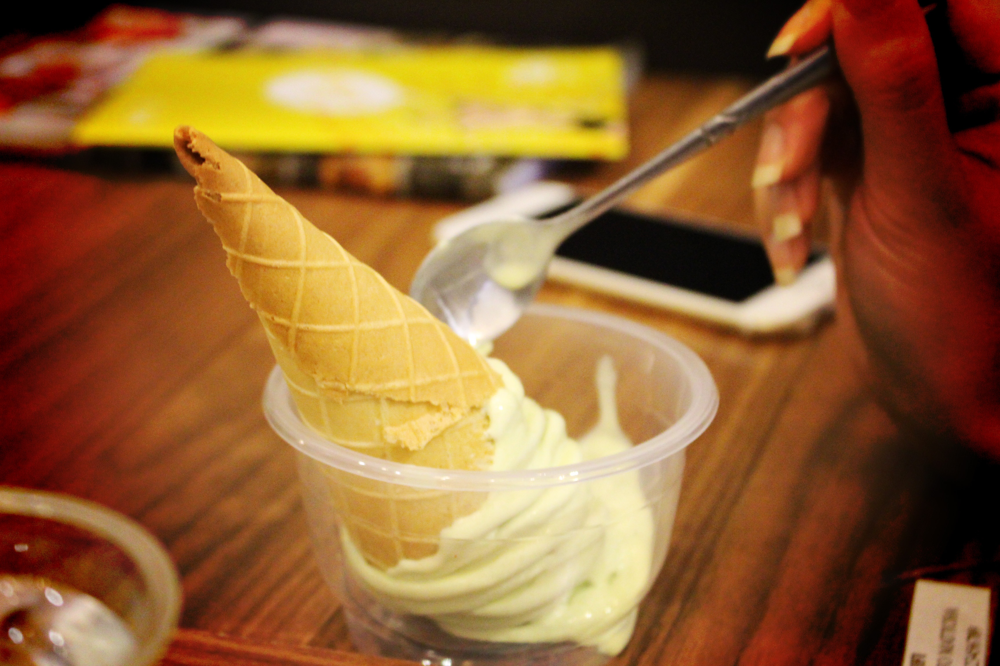 | Ngoài kem wasabi, quán cũng hút khách với vị đậm, đắng, chát của kem matcha. |