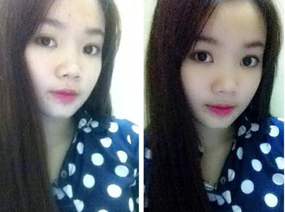 Dù có gương mặt khá nét và làn da min, nhưng cô gái này vẫn đến sự hỗ trợ của "thầy phù thuỷ" sắc đẹp để có làn da trắng mịn, thu hút hơn. Rõ ràng, nhu cầu trở nên đẹp hơn trong mắt mọi người luôn thôi thúc các cô gái trau chuốt hình ảnh cá nhân trước khi tung lên mạng xã hội. Cô cũng không ngần ngại chia sẻ sự khác biệt này lên mạng.