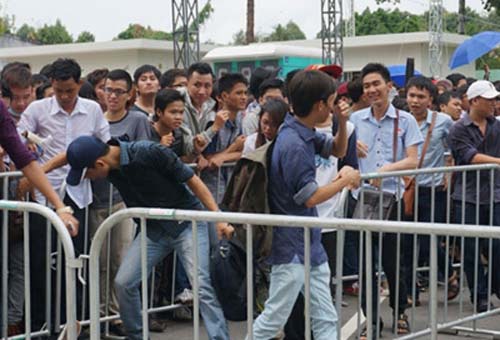 Tuy nhiên vì đã quá trưa, các thí sinh đến sau liên tục xô đẩy, chèn ép những người phía trước, hò hét phá vỡ hàng rào bảo vệ để vào cho nhanh. Không ít thí sinh nữ bị chèn ép quá sức đã hoảng sợ, cầu cứu lực lượng bảo vệ để được thoát ra ngoài.