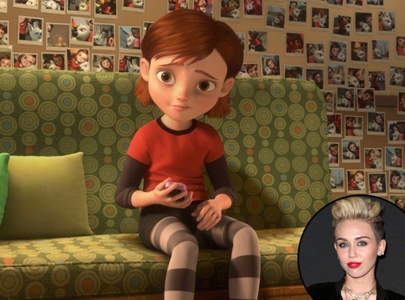 | Tuy quậy phá điên cuồng trên sân khấu nhưng Miley Cyrus từng thể hiện vai cô nàng yêu động vật Penny dễ thương trong bộ phim hoạt hình Bolt. |