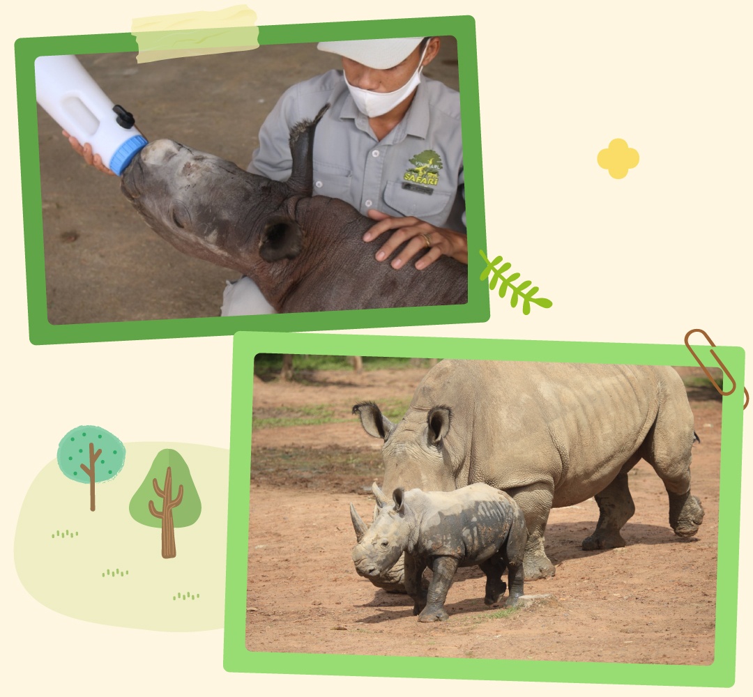 Từ sáng sớm, anh Danh Thuận Phát - Tổ trưởng chăm sóc động vật thuộc khu Bán hoang dã của Vinpearl Safari - đã nghe thấy tiếng 7 chú tê giác con chạy huỳnh huỵch, vầy bùn và đùa nghịch rộn rã một góc khuôn viên. Đó là cách những thành viên nhỏ của đàn tê giác báo hiệu ngày mới đã đến tại khu bảo tồn. Tất cả chúng đều được sinh ra và lớn lên trong tình yêu thương, sự chăm sóc của các nhân viên nơi đây.