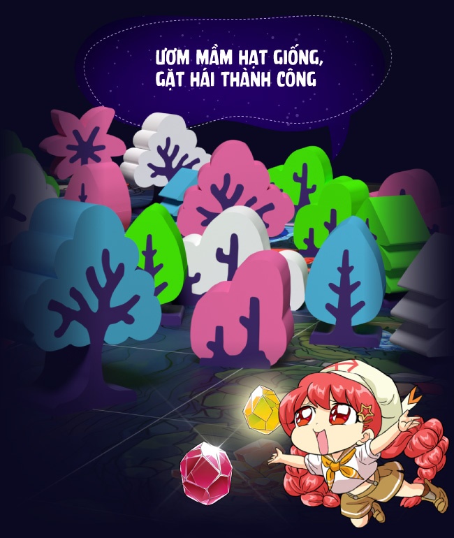 Tham gia Khu rừng Kim cương, thế giới của các bạn nhỏ tuổi tween được khắc họa sinh động qua từng thành phần trong trò chơi. Cụ thể, người chơi sẽ phải lên kế hoạch phù hợp thông qua các thử thách, sẵn sàng nắm bắt cơ hội trồng rừng và chuẩn bị đối phó khi vận xui tới.