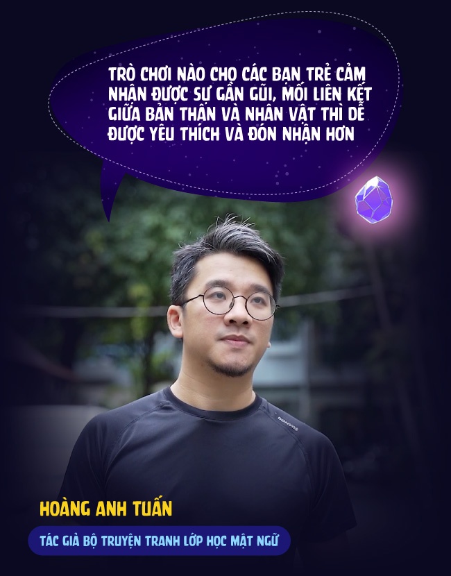 Theo anh Hoàng Anh Tuấn - “cha đẻ” của Lớp Học Mật Ngữ, truyện tranh và đồ chơi là hai thứ gắn liền với tuổi thơ của anh. Đó là nguồn cảm hứng lớn để anh sáng tác bộ truyện tranh về cung hoàng đạo và xây dựng loạt trò chơi tương tác (board game).