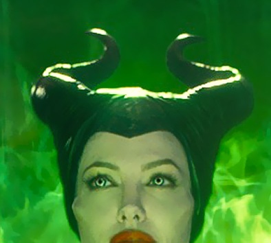 Gò má của Angelina được “bồi đắp” thêm để xương gò má trồi lên sao cho thật sắc, thể hiện sự tàn ác của nhân vật. Ý tưởng này được lấy từ hình ảnh của nữ ca sĩ Lady Gaga cũng từng “độn” gò má. “Angie thích cách mà Lady Gaga hóa trang gò má như một hình tam giác dưới da” – Rick nói đồng thời tiết lộ họ còn sử dụng mũi và tai giả gắn lên Jolie.