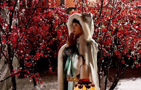| Nàng Nhược Hy (Lưu Thi Thi) đẹp nổi bật trong khung cảnh tuyết rơi của bộ phim Bộ bộ kinh tâm. |