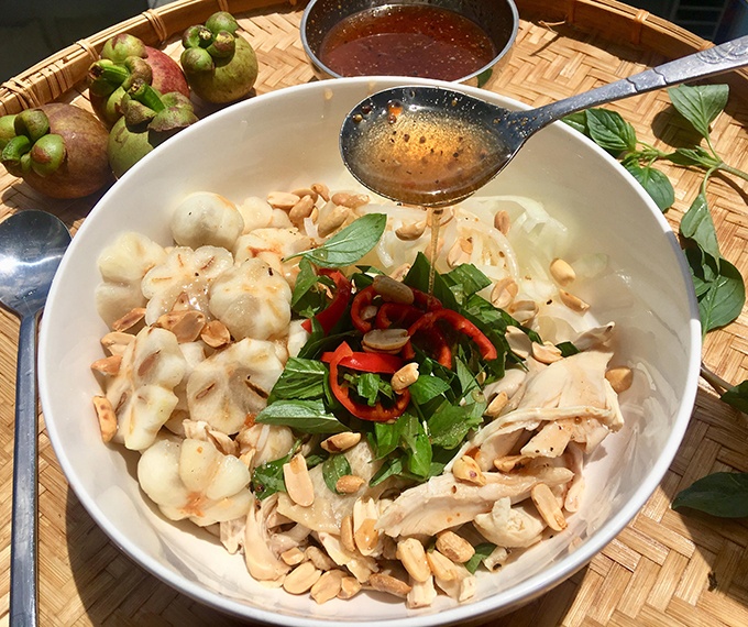 Gỏi gà măng cụt: Nam Bộ vốn là vùng đất nổi tiếng với nguồn trái cây đa dạng và hấp dẫn. Bên cạnh cách thưởng thức truyền thống, các loại hoa quả cũng là nguồn nguyên liệu tạo nên nhiều món ăn mới lạ. Trong đó, gỏi gà măng cụt ở vùng miệt vườn Lái Thiêu (Bình Dương) là đặc sản không thể bỏ qua tại đây. Ảnh: Congthucmonngon. |