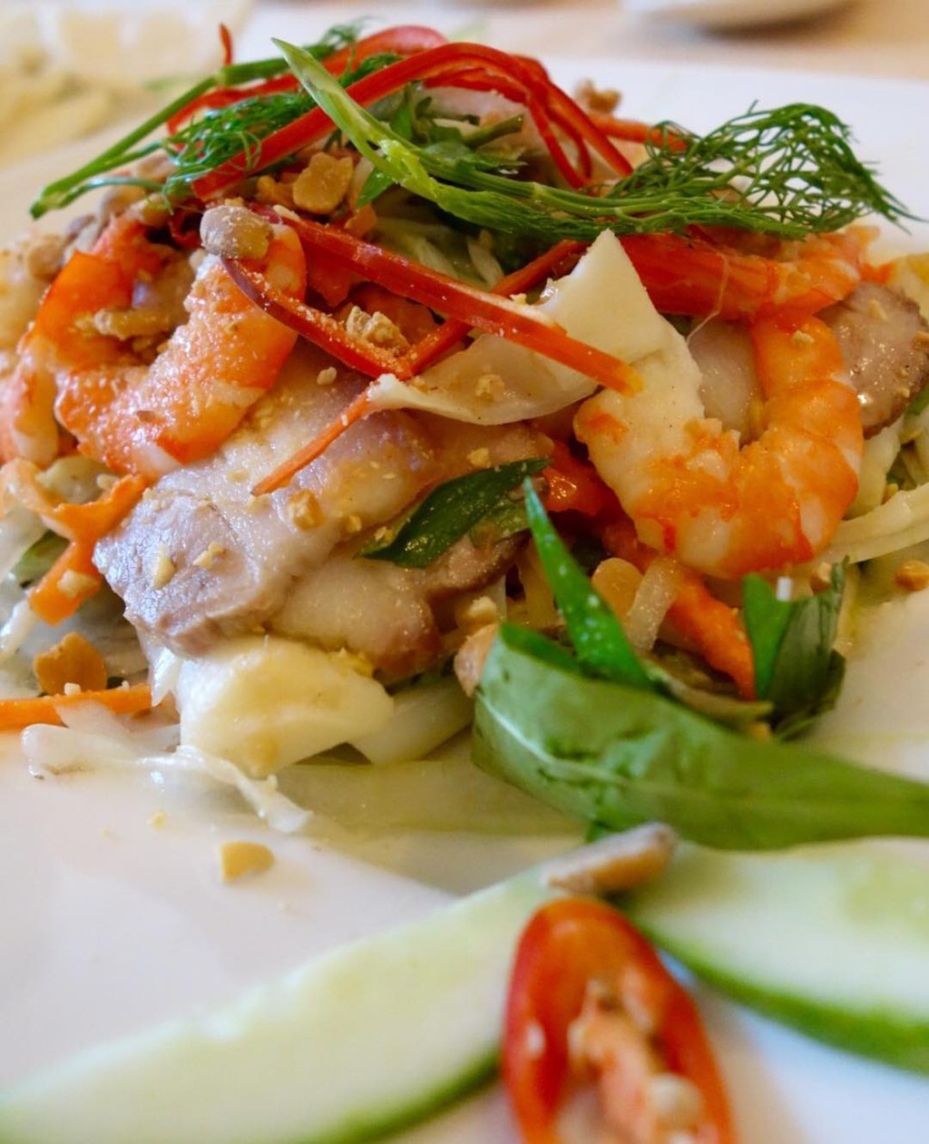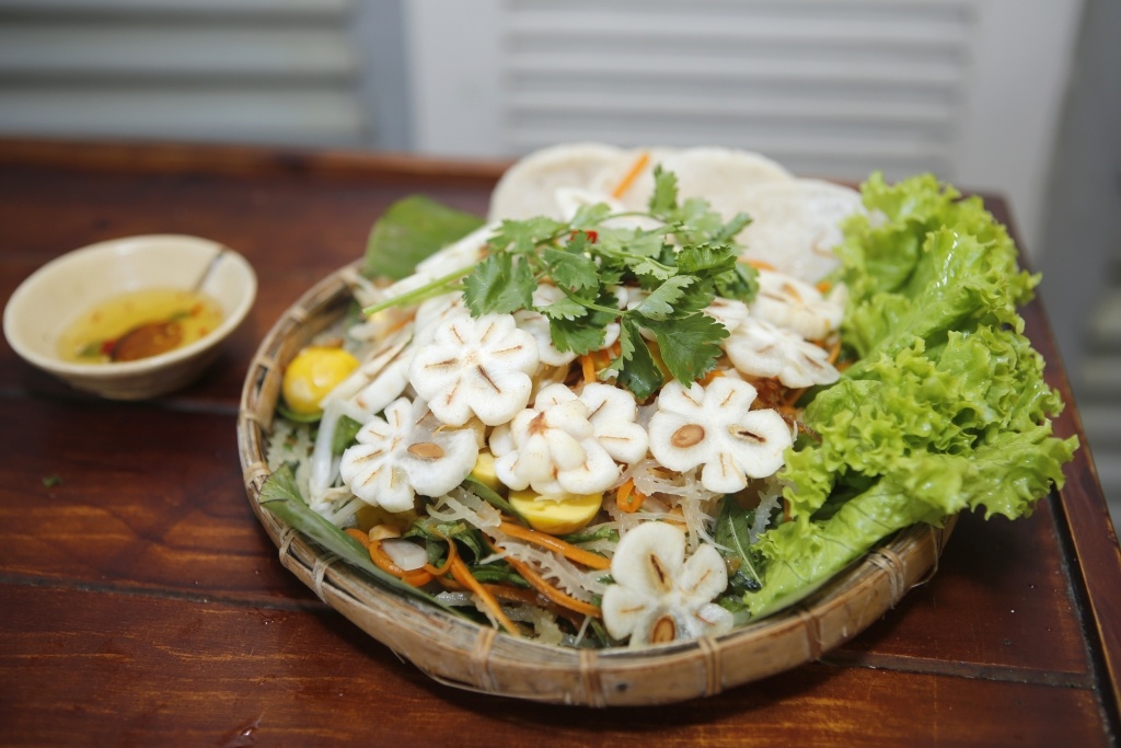 Gỏi bồn bồn kết hợp tôm, thịt và nước mắm ớt, tỏi đậm đà tạo nên món khai vị đặc sắc. Gỏi bồn bồn làm thực khách say mê bởi độ giòn của bồn bồn, vị ngọt từ tôm, vị beo béo của thịt ba rọi. Món gỏi này cũng có thể được biến tấu cùng tai heo, thịt gà hoặc một số loại hải sản khác và thưởng thức cùng bánh phồng tôm. Đây thực sự là món ăn kích thích vị giác của nhiều tín đồ ẩm thực. Ảnh: Ohhnangyy, Anphuongtrang, Instanudo, Hien_chu_. |