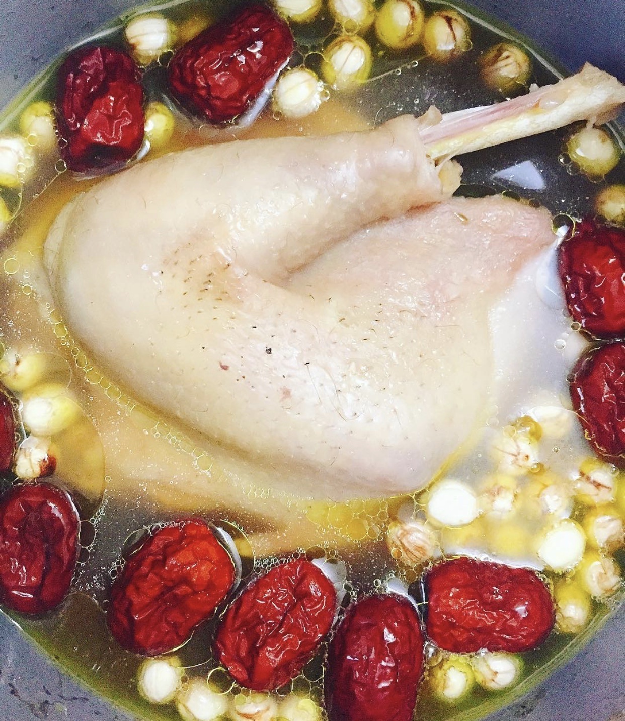 | Nếu đang tìm công thức món chất lượng từ hạt sen, bạn có thể thử làm gà hầm hạt sen táo đỏ. Món ăn thu hút bởi thịt gà mềm hòa quyện nước dùng thấm vị, ngọt thơm từ táo đỏ, cà rốt, nấm… Bạn có thể dùng nồi áp suất để ninh gà nhanh hơn. Đây là món phù hợp thưởng thức vào mùa hè, giúp người ăn nâng cao sức đề kháng. Ảnh: Pinterest, D_m.o.n. |