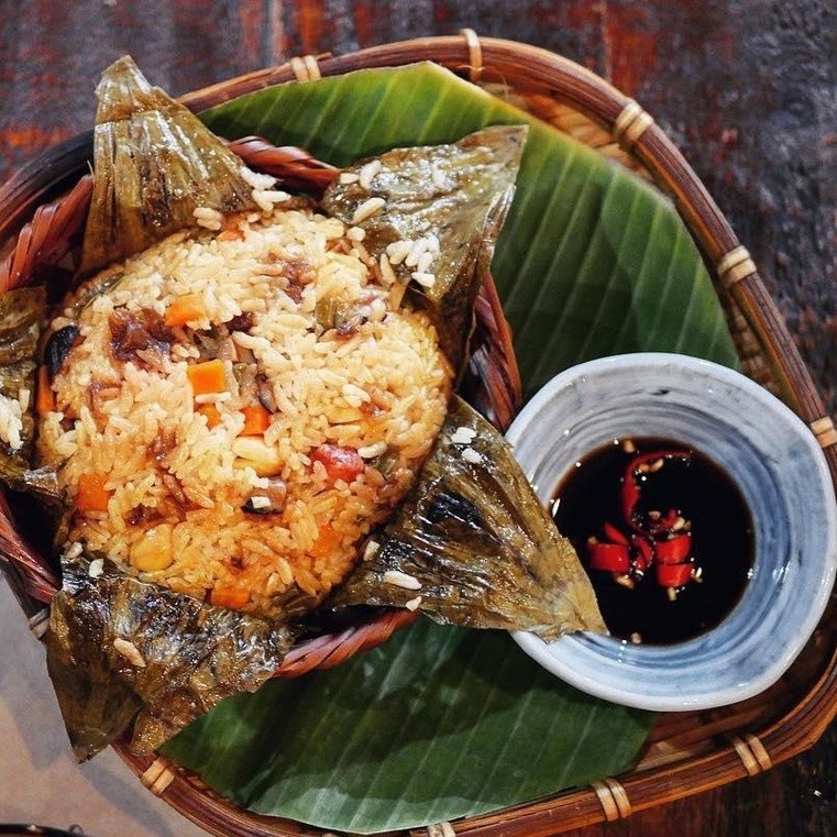 | Cơm hấp lá sen là phiên bản ẩm thực đặc trưng khi nhắc đến những món ngon từ sen. Món ăn này không chỉ chinh phục thực khách bởi hương vị thanh tao mà còn ở cách trình bày tinh tế. Điểm nhấn là hạt sen tươi và giàu dinh dưỡng. Gạo dẻo được nấu trong nước luộc hạt sen mang lại hương thơm dịu nhẹ. Ảnh: Bepquanvn. |