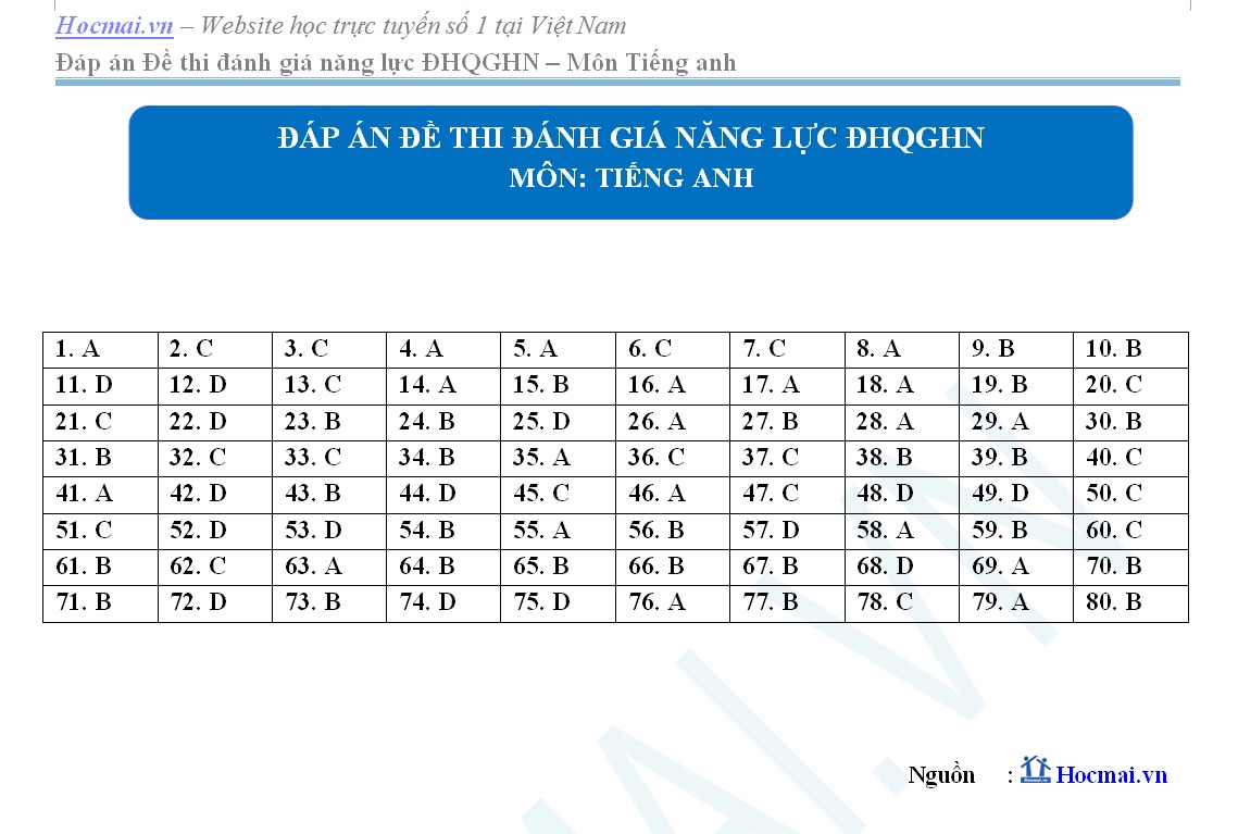 Gợi ý lời giải đề thi do nhóm giáo viên thuộc Trung tâm Hocmai.vn Online thực hiện.