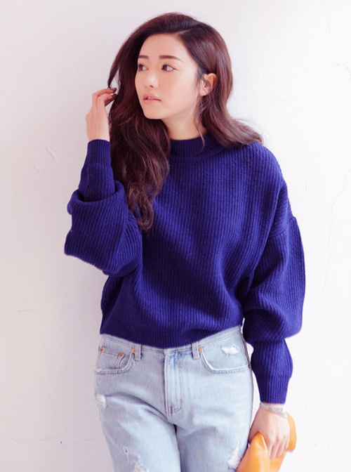 | Áo len lửng với phần thân rộng rãi thích hợp bạn gái mình mỏng và có cá tính mạnh. |